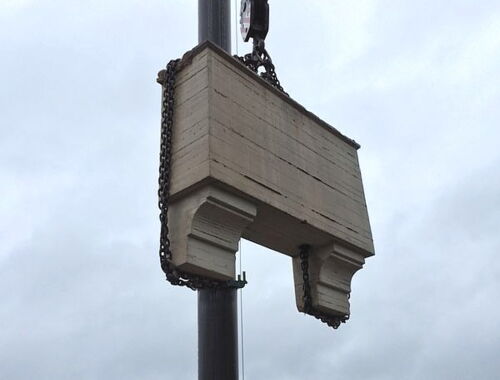 An einem Hochbunker in Oberhausen, mussten wir einen großformatigen Betonerker mittels Seilsäge und 500 t abschneiden.